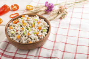 When it comes to whole grains, cooked pearled barley offers 3.55 grams in one cup. Cooked, roasted buckwheat groats offer 5.68 grams, cooked bulgur offers 5.6 grams, and cooked rolled oats pack in nearly 6 grams. Though cooking times vary by grain, it’s easy to make a large batch that will last a few days.