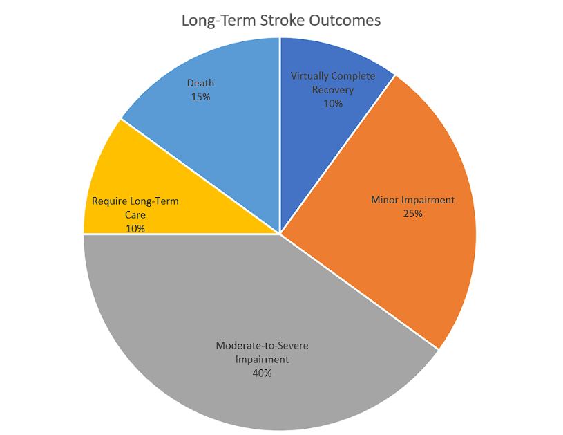 Here’s a statistical breakdown of long-term stroke outcomes according to Northwestern Medicine: