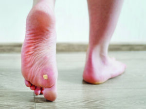 Warning: A “Morton’s neuroma” could be confused with a callus. Like a callus, it can feel like a pebble in the shoe. But a neuroma is overgrown nerve tissue inside the foot, not excess skin cells. Morton’s neuromas typically occur in the forefoot, often between the third and fourth toes. They’re usually painful. Sometimes placing a pad on the bottom of the foot between the metatarsal heads can alleviate discomfort. Shoes that are wider across the forefoot may help as well. A podiatrist can offer nonsurgical treatment options, such as “radiofrequency ablation”—high-frequency radio waves delivered via a needle that destroy the problematic nerve tissue.