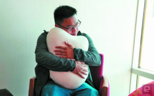 Reduce anxiety with a robotic pillow: Fufuly expands and contracts as if it were breathing. Hugging it replicates the reassuring sensation of hugging a comforting person or pet. Japan’s Yukai Engineering worked with researchers at University of Tokyo to develop Fufuly and claims that holding this pillow for five minutes can lead to “rhythmical synchronization,” which encourages anxious people to slow their breathing and calm down. No pricing data or release date is yet available. Ux-xu.com