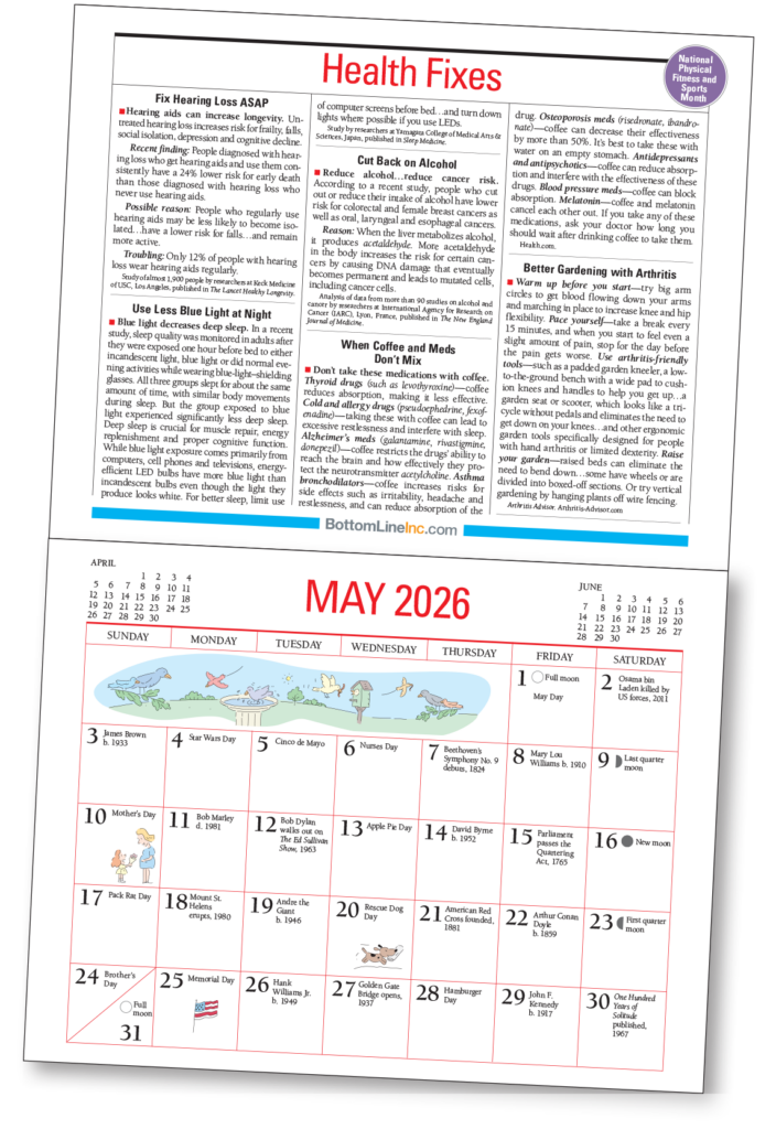 A simple recipe for happiness. January 2026 | Myths about love busted. February 2026 | The green fruit that boosts mood. March 2026 | Income the IRS doesn’t tax. April 2026 | Don’t take these meds with coffee. May 2026 | Follow the best hiking trails. July 2026 | Make your smartphone smarter. August 2026 | A better way to grind coffee. November 2026 | Save on holiday shopping. December 2026